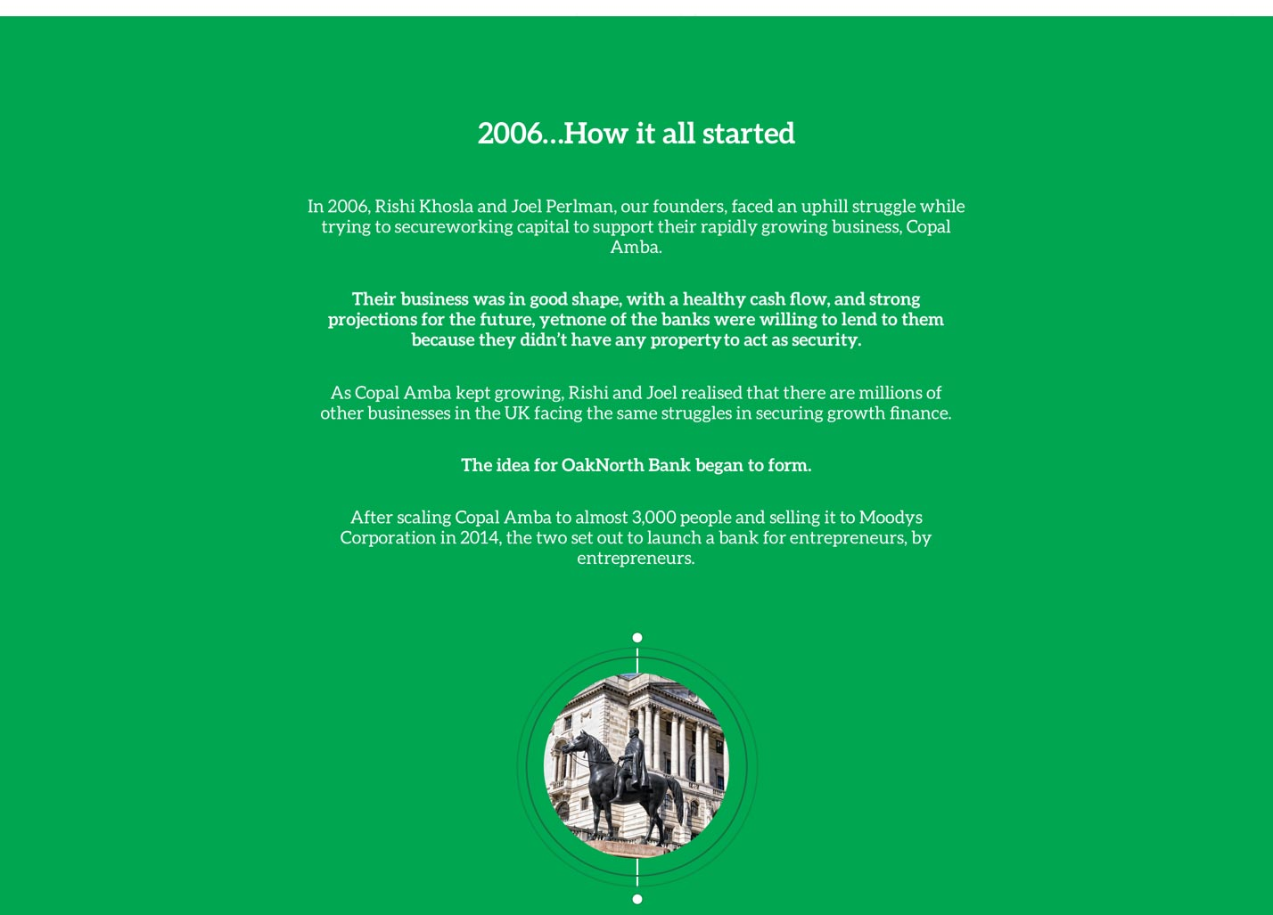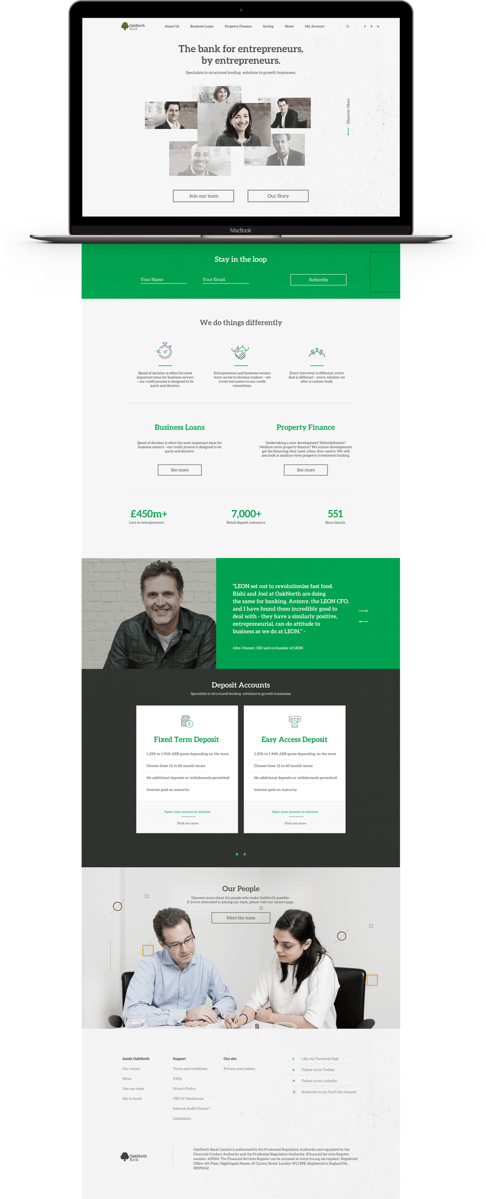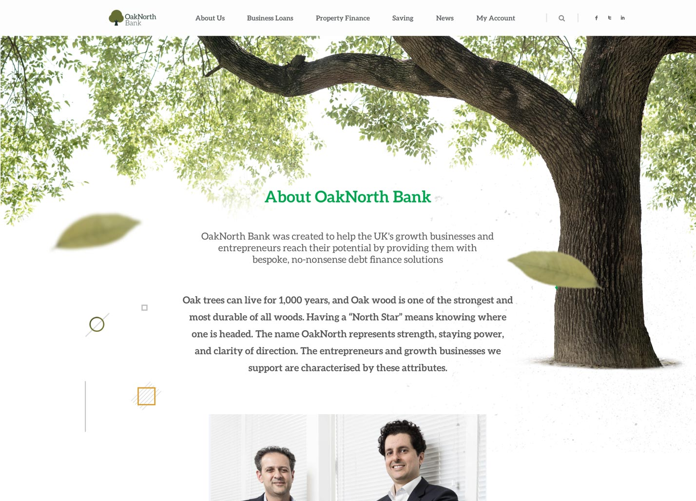 OakNorth is one of the UK's leading digital banks, specialising in lending to entrepreneurs and fast-growing businesses. The existing website fell short of both the bank's market positioning and its brand standards. The brief called for a full redesign — rebuilding the visual language and interface from the ground up.