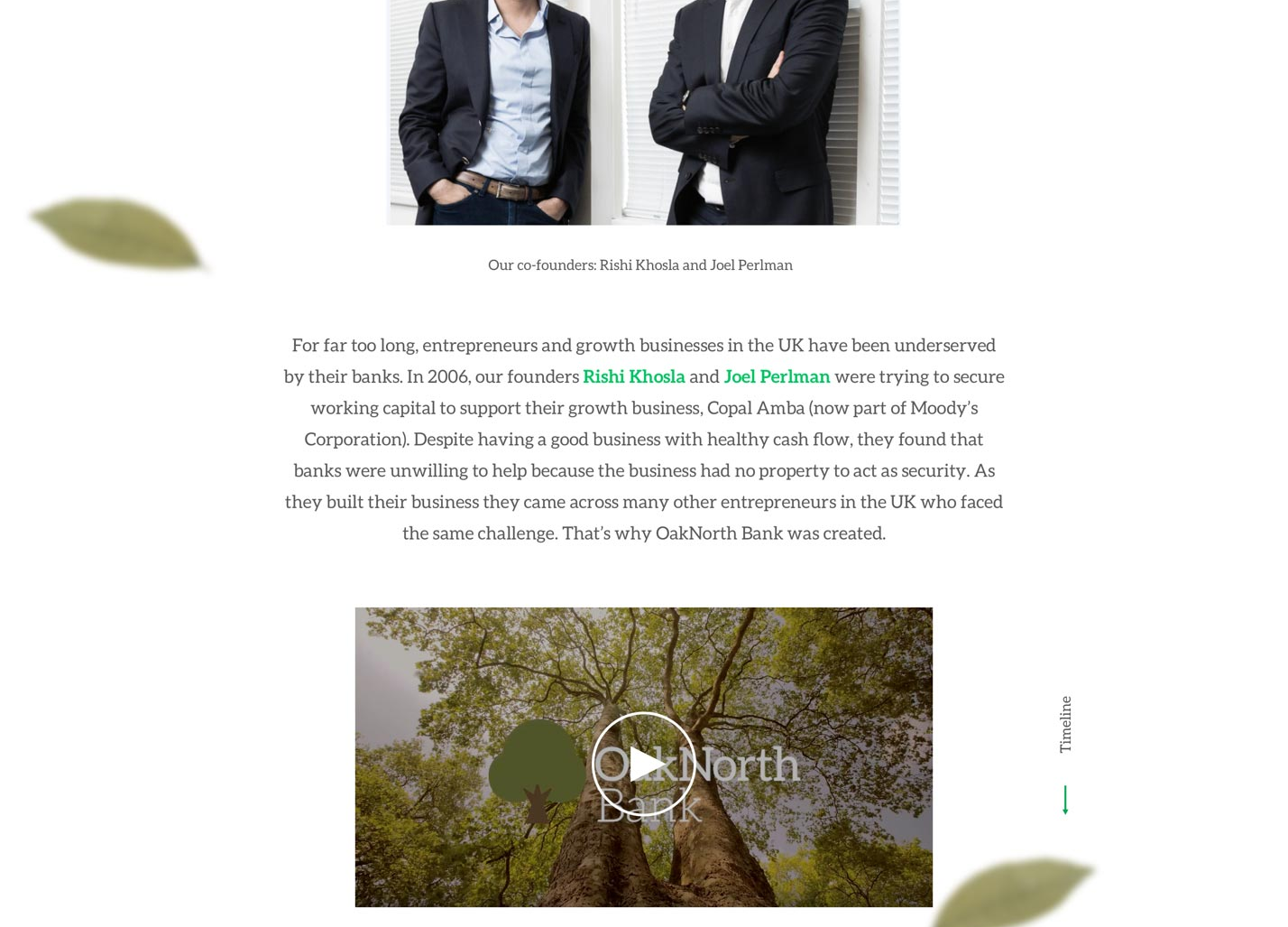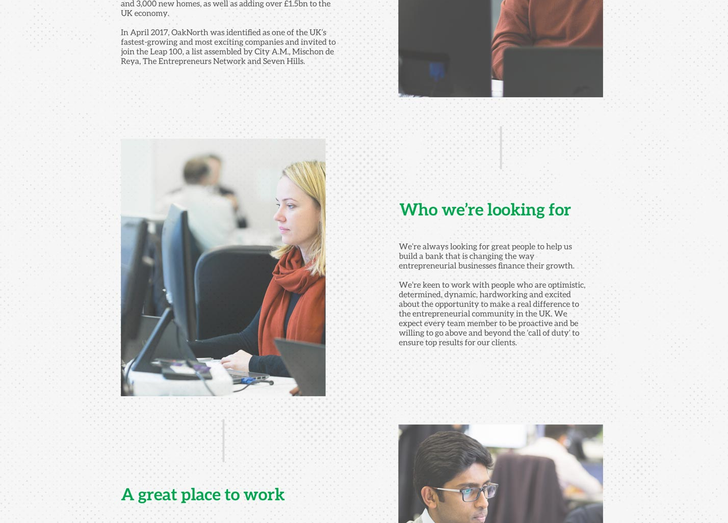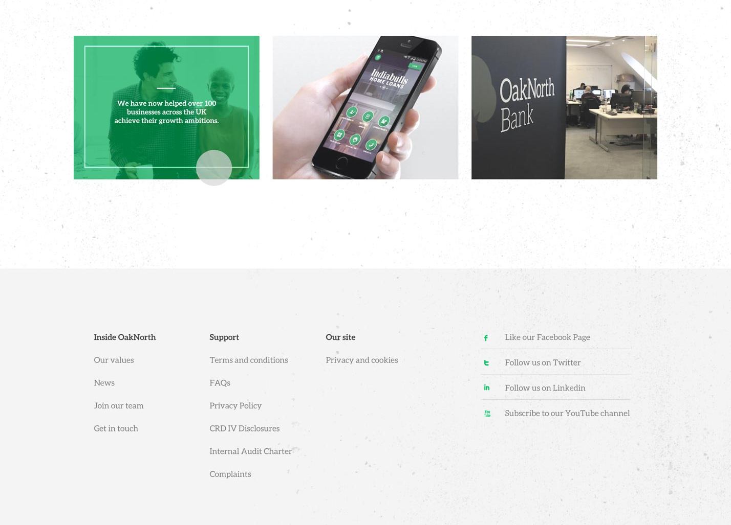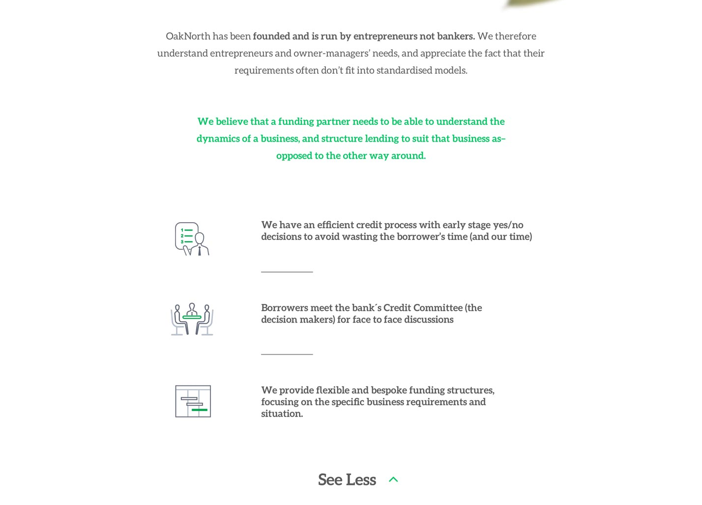 OakNorth is one of the UK's leading digital banks, specialising in lending to entrepreneurs and fast-growing businesses. The existing website fell short of both the bank's market positioning and its brand standards. The brief called for a full redesign — rebuilding the visual language and interface from the ground up.