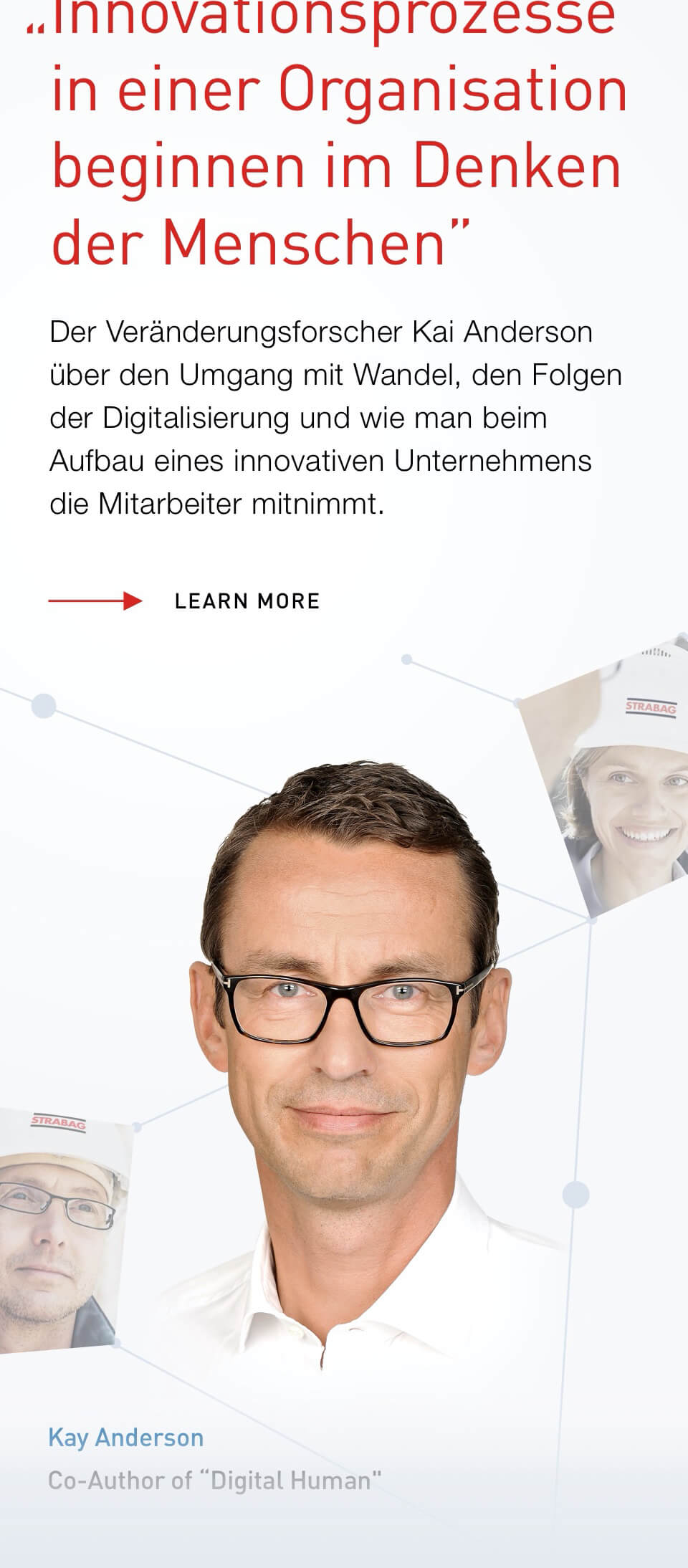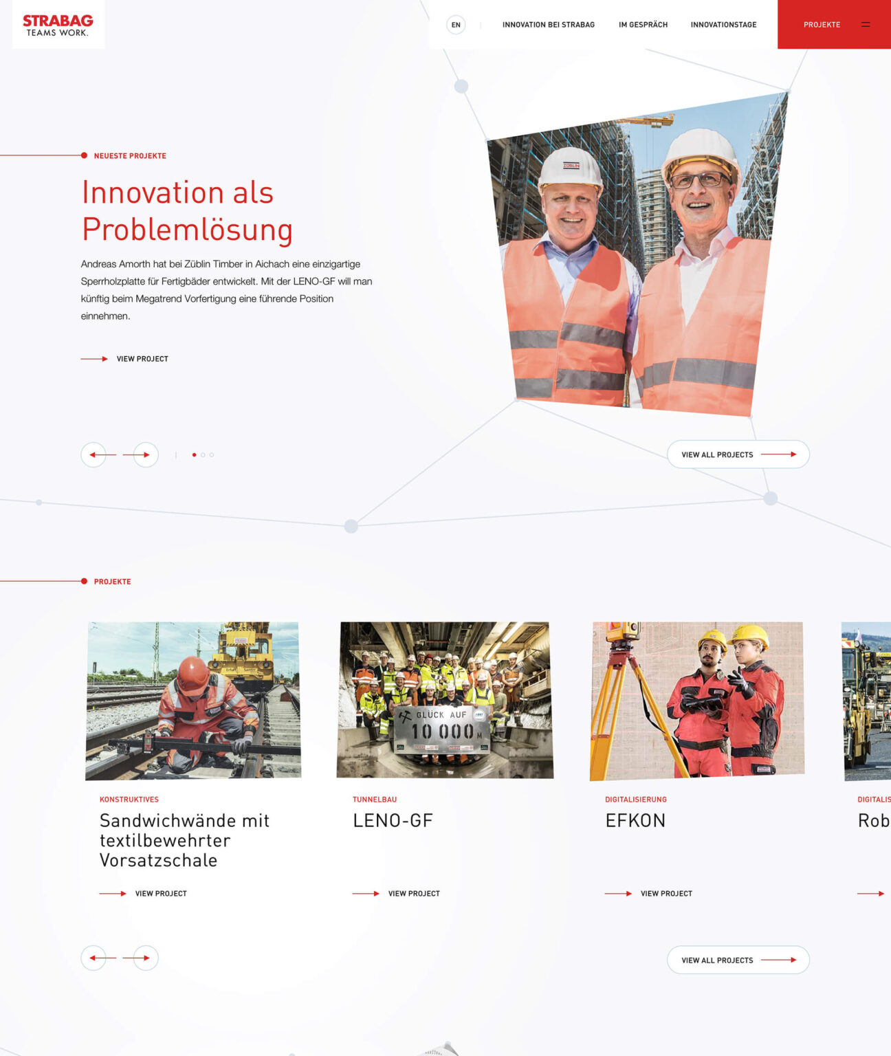 Strabag Innovation is a digital journal documenting the latest developments across Strabag's network — from automation and data management to materials science, engineering, and design. Built to disseminate knowledge across an extensive network of partners and clients.
